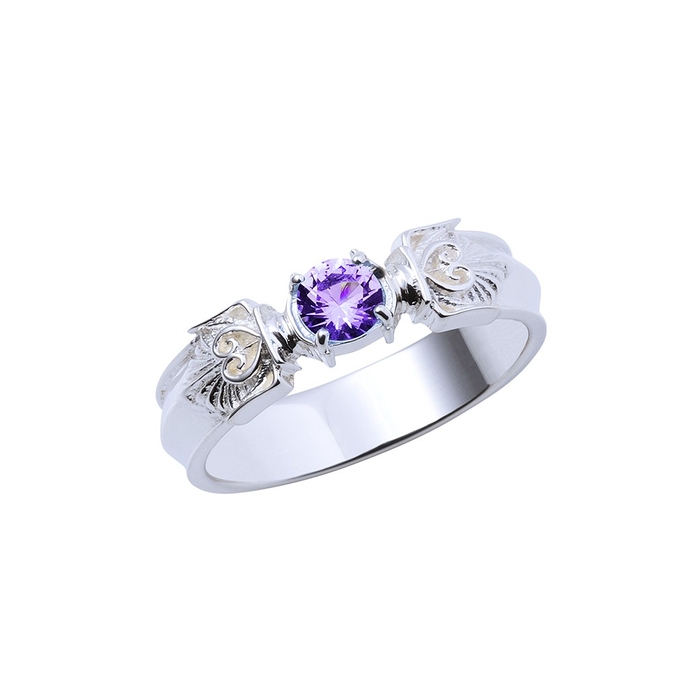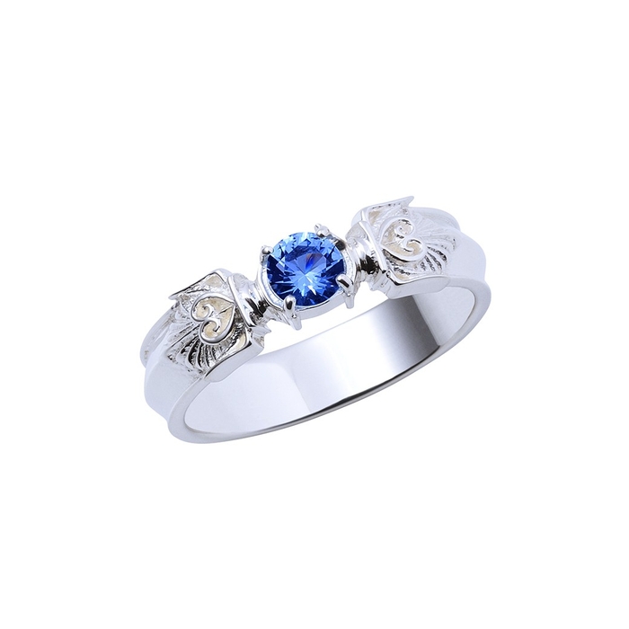 三好の指環(弓)は洗練されたシルバーカラーを施したカレッジリング風の型に、イメージカラーストーンを配した上品なデザインです。