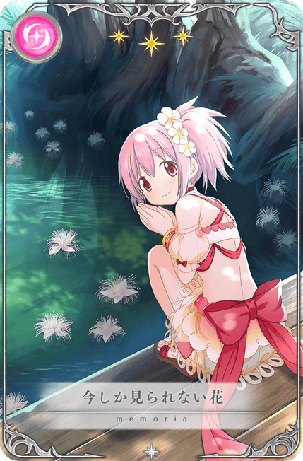 本ガチャより、新魔法少女「鹿目まどか 水着ver.(CV.悠木碧)」と新メモリア「遊びだって真剣勝負!」「今しか見られない花」が期間限定で登場いたします。