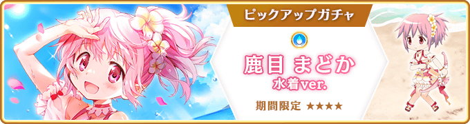 また、本ガチャの開催と合わせて『期間限定 鹿目まどか 水着ver. ピックアップガチャ』をお得に引ける『有償限定 ステップアップガチャ 鹿目まどか 水着ver.編』を開催いたします。
