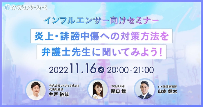 【インフルエンサー向けセミナー】炎上・誹謗中傷への対策方法を弁護士先生に聞いてみよう!11/16 (水) 20:00開催