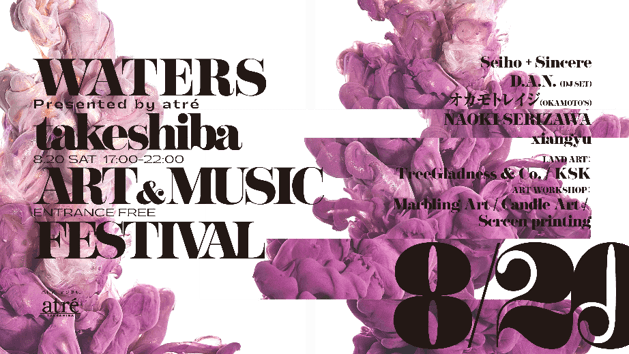 株式会社アトレ(本社:東京都渋谷区、代表取締役社長:一ノ瀬 俊郎)は、8月20日(土)に「アトレ竹芝」(タワー棟:東京都港区海岸1-10-30、シアター棟:東京都港区海岸1-10-45)前の野外エリアにて音楽とアートが一度に体感できる野外フェスティバル「WATERS takeshiba ART&MUSIC Festival」を開催します。