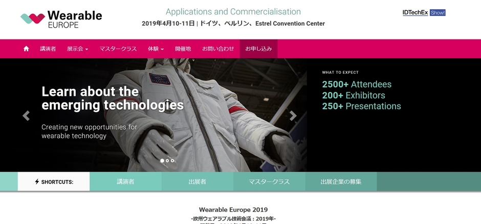 会議:「Wearable Europe 2019-欧州ウェアラブル技術会議 2019年」