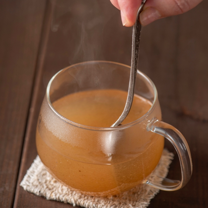 袖山千春さん(以下 袖山さん):細かいですよね。まずは、お湯に溶かして飲んでみてください!