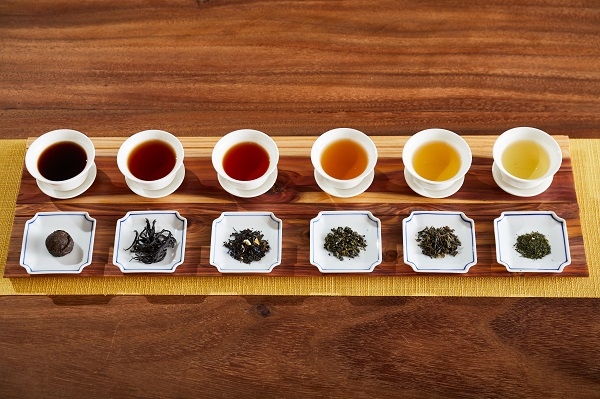 「発酵茶入門」で参加者は、どの種類の茶を飲むと免疫力向上に繋がるかを学び、その知識を普段の生活にも取り入れることができるようになります。まず、座学では、発酵とお茶の関係をどれだけ知っているか、アンケートに答え、その後、6種類の発酵の度合いによる茶葉や茶の色、香りの違いを見たり、嗅いだりしながら知識を深めます。たとえば、酵素発酵の紅茶はカフェインにより体を温める効果があり、4微生物発酵であるプーアル茶には、お茶に含まれる乳酸菌の効果で腸内環境を改善する効果がある5とされています。座学の後には、免疫細胞に重要な腸内環境を改善するというプーアル茶を含む3種のお茶の飲み比べと、台中市の銘菓で、穀類を発酵させた紅麹(べにこうじ)*6使ったお菓子を提供します。
