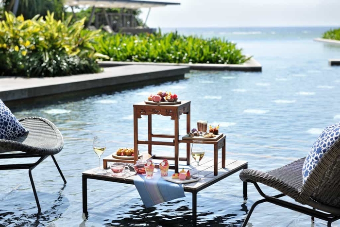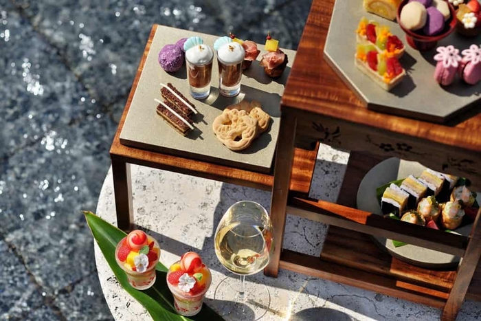 【星のや沖縄】海に臨むプールサイドで味わう、琉球王朝時代のもてなしを現代に表現した「海風(うみかじ)アフタヌーンティー」提供|期間:2023年3月1日~5月31日