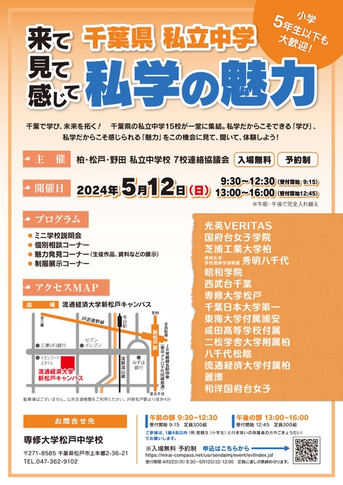 千葉県私立中学の魅力がわかる 「私学の魅力2024」合同学校説明会開催 2024年5月12日(日)流通経済大学 新松戸キャンパスにて