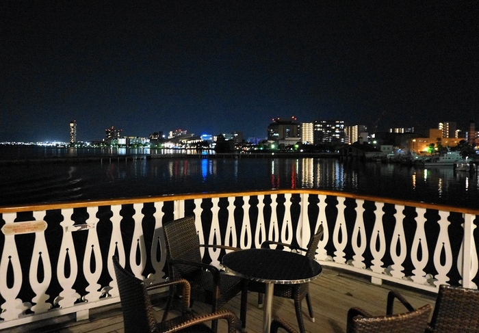 各階デッキ席や4階スカイデッキ(自由席)にて、びわ湖の美しい夜景を眺めながらクルーズと