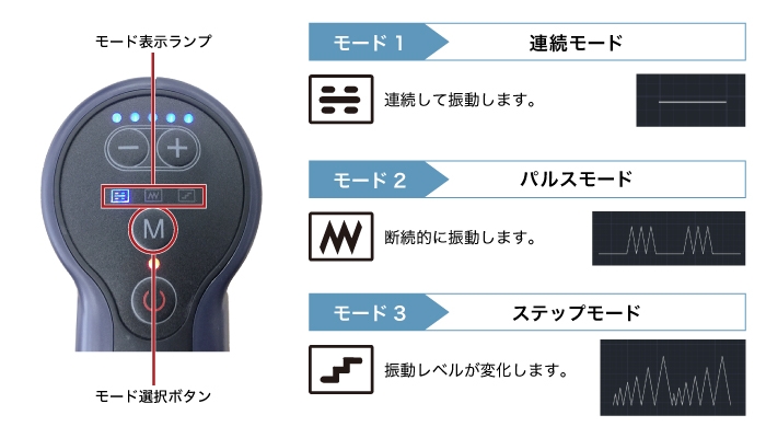 振動モードは3つのモードから選択可能。