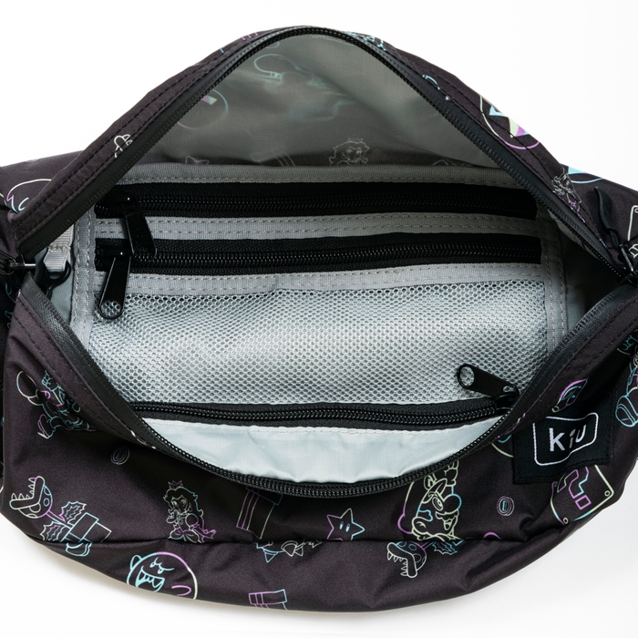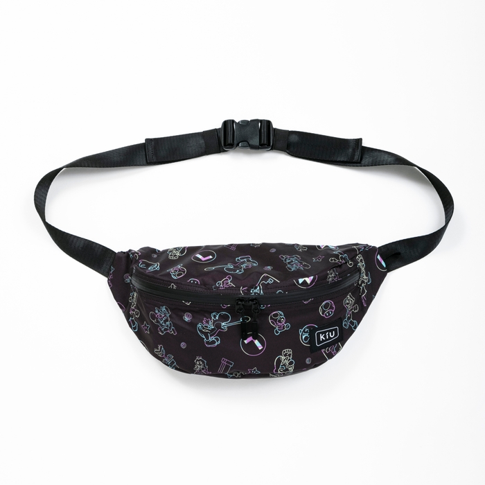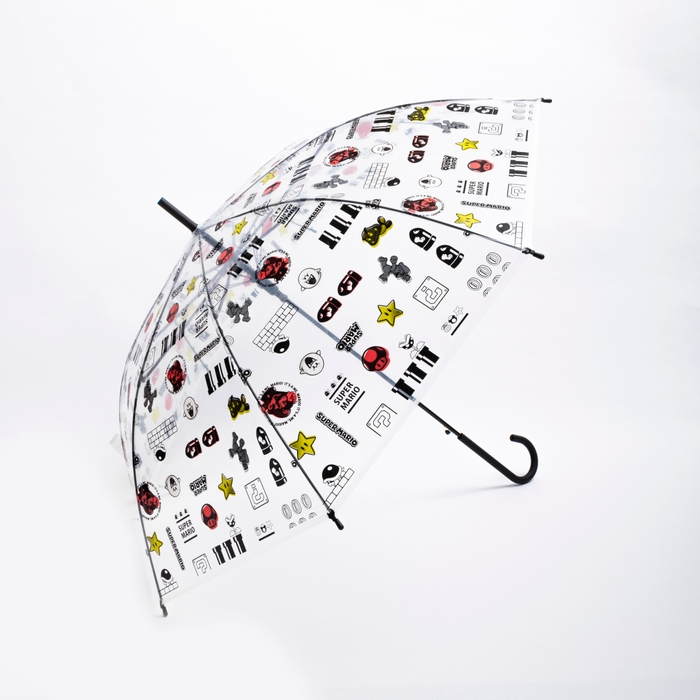 マリオなどのキャラクターをはじめ、キノコやスターなどアイコニックなモチーフを散りばめた柄。クールな印象の中に、こちらを見ているテレサや転んでいるクリボーなども愛くるしいアイテムです。