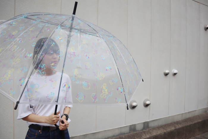 人気のキャラクターやアイテムがぎゅっと詰まった柄。ネオンカラーが雨の日も楽しい気持ちにしてくれます。