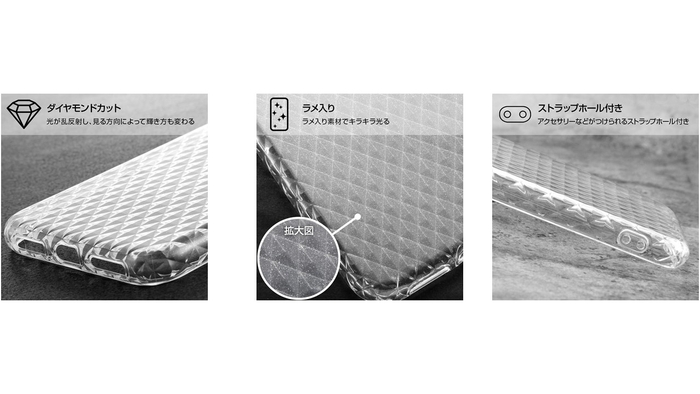 株式会社イングレムはダイヤモンドカット加工のクリアケース各3色と¥1,200円相当のガラスフィルムをセットにした、お得なセット商品を展開致します。