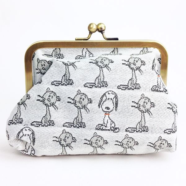 スヌーピーの天敵?おすわりした猫のファーロンとスヌーピーがかわいい、ゴブランのがま口のポーチは使いやすさが魅力!