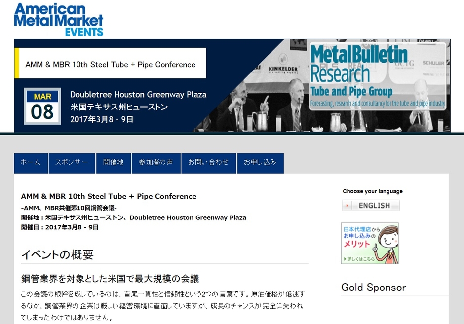 会議:「AMM & MBR 10th Steel Tube + Pipe Conference-AMM、MBR共催第10回鋼管会議」