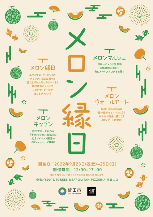 【明日スタート】鉾田市×800°DEGREESメロンイベント!「メロン縁日」を800°DEGREES南青山店にて9/23~9/25に開催