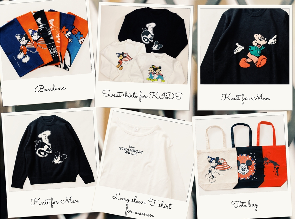 『蒸気船ウィリー』をメインモチーフにメンズデザインはインターシャのニットに落とし込み、ウィメンズはロングスリーブのカットソー、キッズは普段遣いに便利なスウェットへとオーセンティックでクラシカルなミッキーモチーフを表現しています。