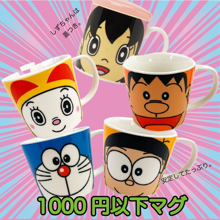 アニメや映画でますます人気のドラえもんから、使いやすくてかわいいマグカップのご紹介です。ドラえもんだけでなく、ジャイアンやのび太のフェイスデザインもあるので、お好きなキャラクターでまったりできちゃいますよ。