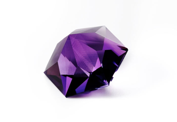 六角形のカラーストーンの表面は六角錐カット、裏面は36面体カット。