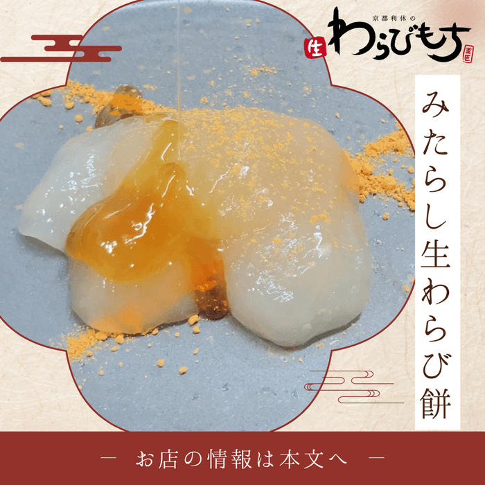 一般的なわらび餅とは別ものともいうような「生わらび餅」の特徴は、その圧倒的な柔らかさ。口に入れた瞬間にふわっととろける食感を実現するため、 厳選した原材料と独自の製法を採用しています。これにより、今までにない新感覚のわらび餅が誕生しました。