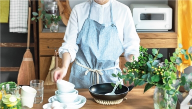 ■エプロン ¥3,520/ティータオル ¥1,600 / キッチンクロス ¥660 ※全て税込