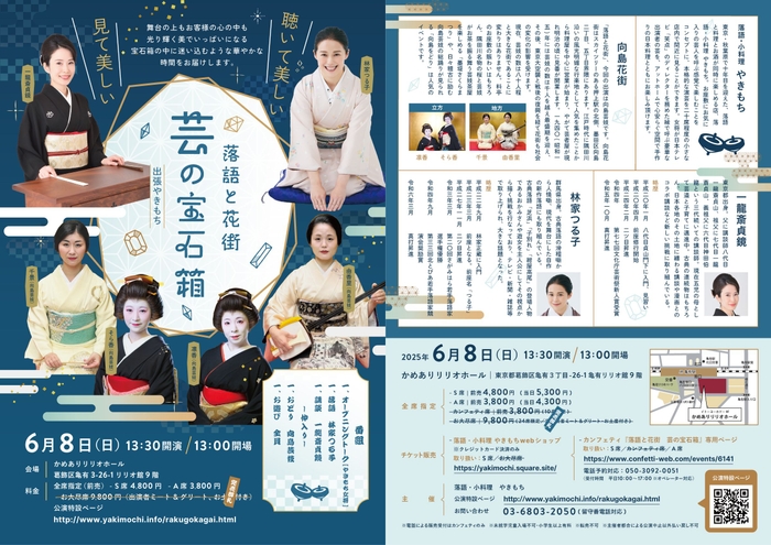 落語・小料理 やきもち主催、『落語と花街 芸の宝石箱』が2025年6月8日 (日)にかめありリリオホール(東京都 葛飾区 亀有 三丁目26番1号)にて開催されます。
