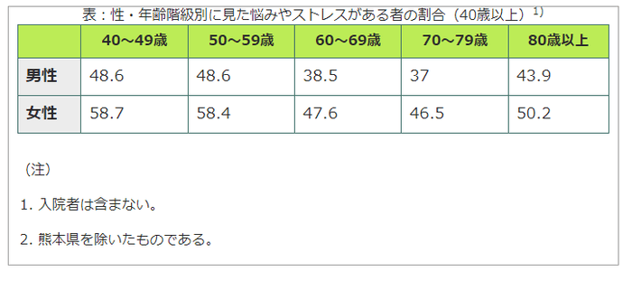 厚生労働省の「平成28年 国民生活基礎調査概況」によると、多くの高齢者がストレスを抱えている実態が明らかになっています。
