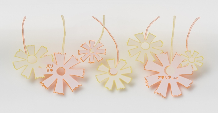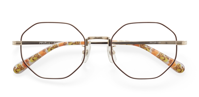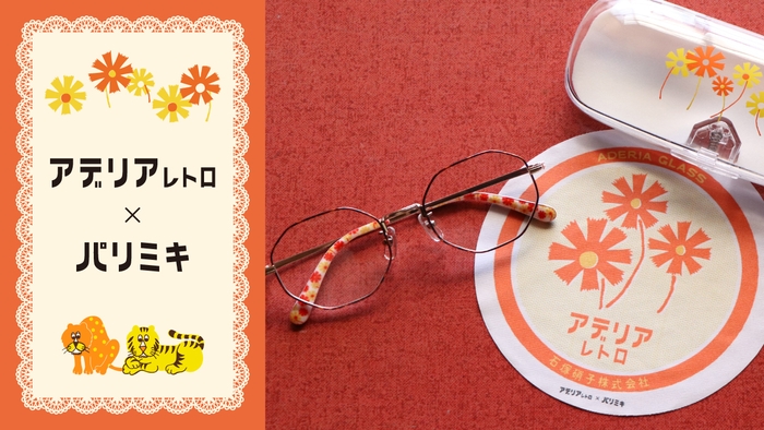 「アデリアレトロ」は、かつて昭和の家庭で使われていたアデリアのグラスウェアを、現代でも安心してお使い頂けるようリメイクした製品です。代表的な商品の一つは、花や動物など、かわいらしい柄をあしらったプリントグラスです。当時の魅力はそのままに、今のライフスタイルでも使いやすい製品として生まれ変わりました。今回のコラボレーションフレームは、そのアデリアレトロの人気モチーフを取り入れ、オリジナルのアセテート生地を一から作るなど、新しくもあり懐かしいレトロな魅力を詰め込みました。