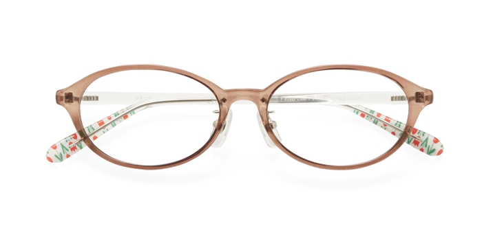シンプルでベーシックなオーバル型のレンズシェイプ。前枠には、001モデルと同じようにエコ素材を使用し、テンプルにモチーフを印刷しています。小ぶりなサイズ感に加え、柔らかい樹脂の素材は軽い掛け心地です。