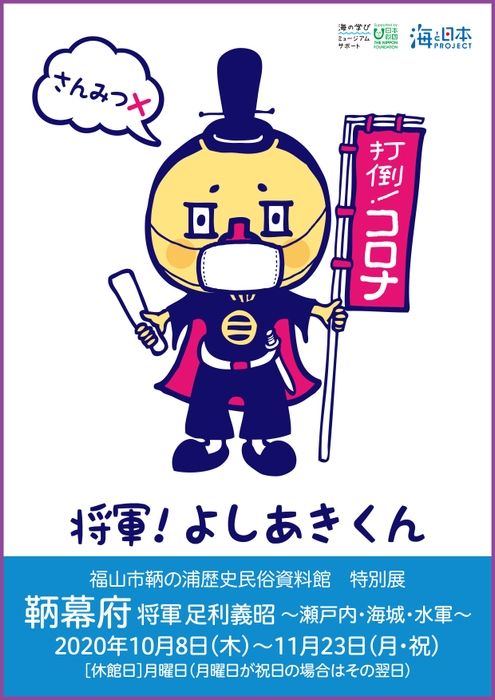 広島県福山市では、鞆の浦学園の子ども達が、鞆幕府・足利義昭について学び、「将軍・よしあきくん」の原画を考案しました。