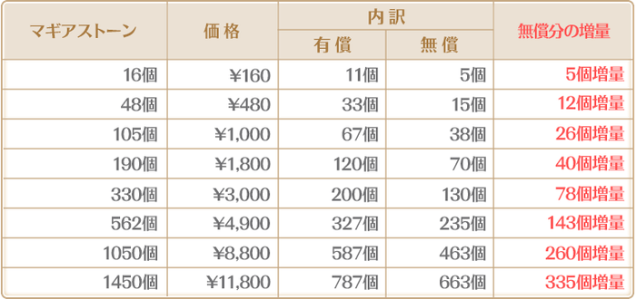 期間限定で、おまけ(無償マギアストーン)を増量したマギアストーンが登場いたします。