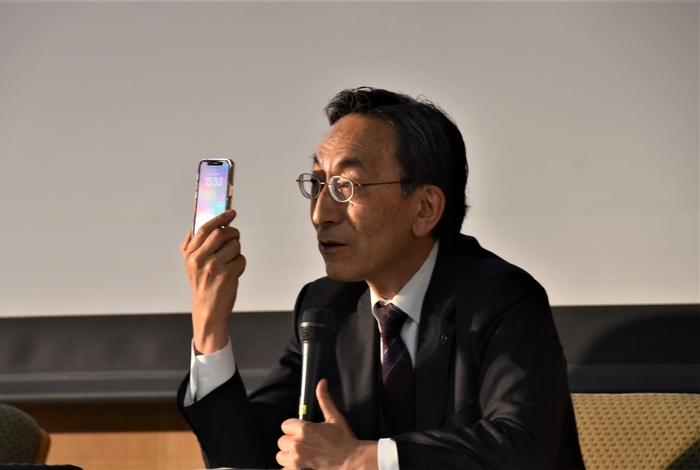 大容量記憶装置の開発につながるスピントロニクス半導体を開発した大野総長は、大学での研究について「役に立つ軸と考えを深める軸という両方の軸が必要」と強調しました。さらに、東北大学で進めている「災害科学」の研究の取り組みから「社会を変え、世界を動かす研究であり、世界に発信している。日本の大学も世界を相手にした枠組みづくりを意識していかなければならない」との認識を示しました。