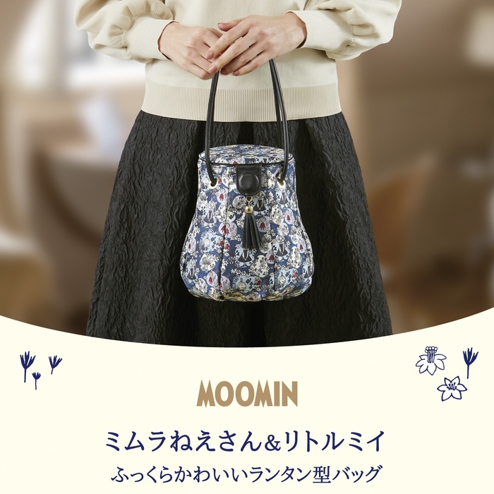 ミムラねえさんとリトルミイのモチーフを全面にちりばめた、かわいいランタン型バッグのご案内です。