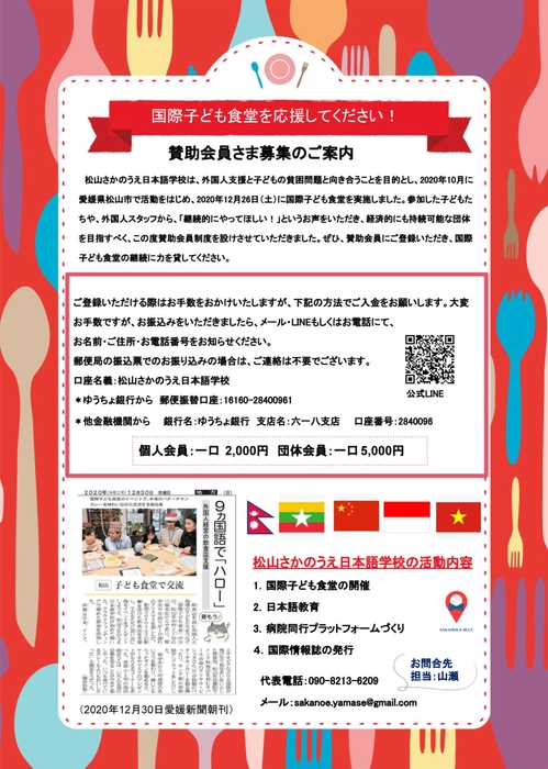 ウェルカムで国際的な松山の子ども食堂【寄付・賛助会員募集】
