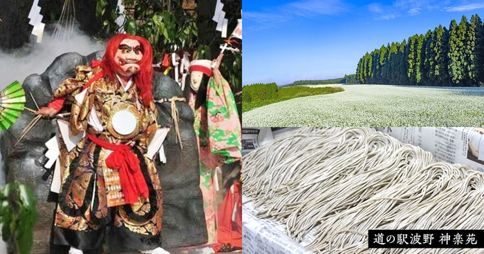 神楽苑は、波野そばを使用したそば料理が食べられるレストランや地元特産品の直売所、伝統芸能の神楽について学べる資料館などが集まった道の駅で、「九州で一番古い道の駅」とも呼ばれています。 特産の蕎麦は『波野そば生産組合』から玄蕎麦の状態で仕入・製造。(阿蘇市合併前の旧波野村の特産品) そばは多い時で1日約500食販売し、老若男女問わず多くの方々に愛されています。