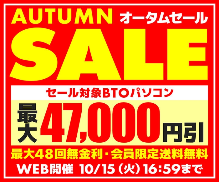 パソコン工房WEBサイト、セール対象BTOパソコンが最大47,000円OFFの『オータムセール』開催中