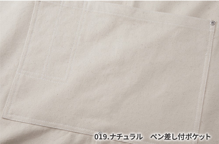 厚手で丈夫なキャンバス生地または、デニム生地を使用!フロントスリットを配置することにより引っかかりを軽減。しゃがみやすいため、キッチンからガーデニングと幅広いワークウェアとしても利用可能。