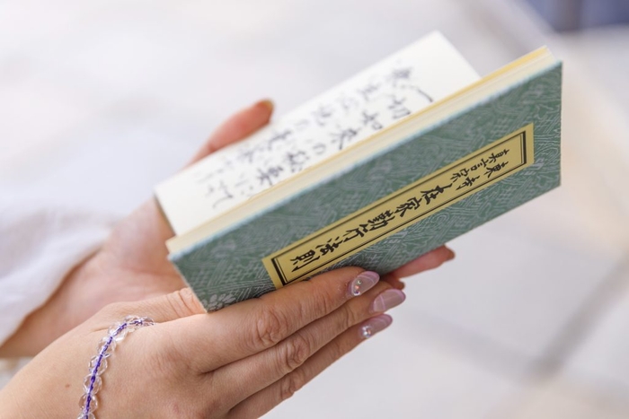 OMOベースの中心にある写経テーブルでは、写経や書を通して心をととのえることができます。弘法大師空海が書の達人であることから着想しました。墨を使う書とは異なり、棒で砂に書き、終えた後は砂を消すのみのため、気軽に誰でも参加でき、心ゆくまで何度でもチャレンジできます。