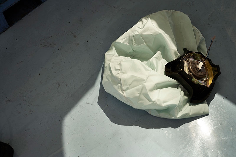 REBIRTH PROJECTの理念・活動と、自社ファクトリーBASE OSAKAを構え、バッグの生産を通して職人たちが日々新たなもの作りに挑戦し続けるmaster-pieceの技術が合致し、2011年にシートベルトと未使用のエアバッグを使用したコラボレーションバッグをリリースしました。解体工場からピックアップしたシートベルトやエアバッグの素材を洗浄工場にて汚れを落とし、BASE OSAKAの職人が一枚一枚手作業にて色分けを行いパーツを裁断し、縫製を行っています。