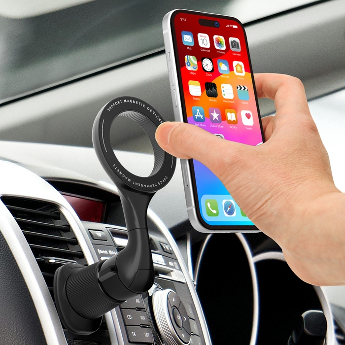 MagSafeに対応したiPhoneを容易に着脱できるカーエアコンの吹き出し口(ルーバー)に取り付け可能な車載用マグネットホルダーを株式会社PGAが5月20日より発売