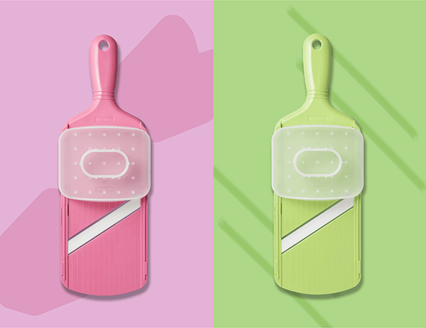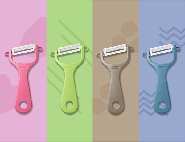 ピーラーはカラフルキッチンシリーズのセラミックナイフ同様、人気の高いチャームピンク、ナチュラルグリーンと、シックで落ち着いた色合いのラテベージュとダルブルーの4色で展開し、スライサーはチャームピンクとナチュラルグリーンの2色をご用意しました。