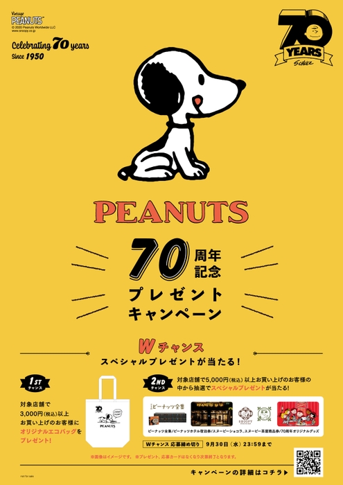 お買い上げプレゼント&抽選で スペシャルプレゼントがあたるWチャンス PEANUTS 70周年記念プレゼントキャンペーン開催中