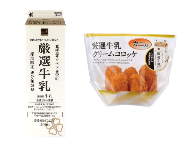 「北海道サロベツ豊富町厳選牛乳」「厳選牛乳カニクリームコロッケ」のみでもお買い求めいただけます。