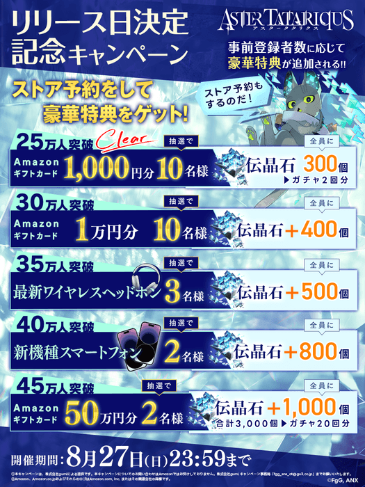 また、事前登録者数に応じた豪華プレゼントキャンペーンの開催も決定いたしました。