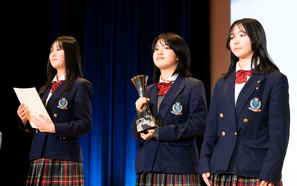 「メンバーそれぞれが『社会をより良くしたい』という強い思いを持っており、互いの意見を尊重しながら懸命にまとめていた。学年もクラスも異なり、これまで関わり合いのなかった生徒同士が協力し合う姿に、胸が熱くなりました」