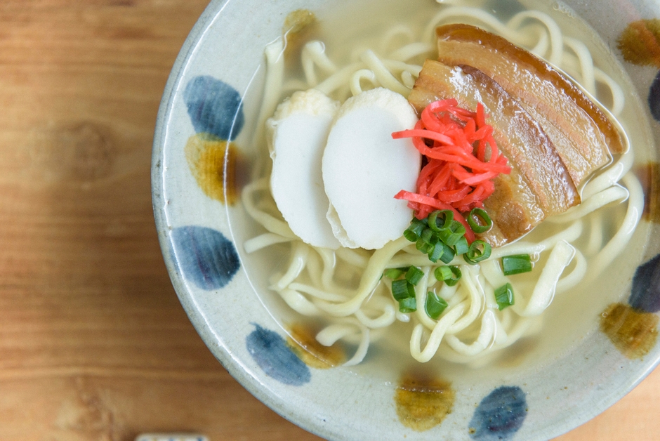三枚肉がのった沖縄そば
