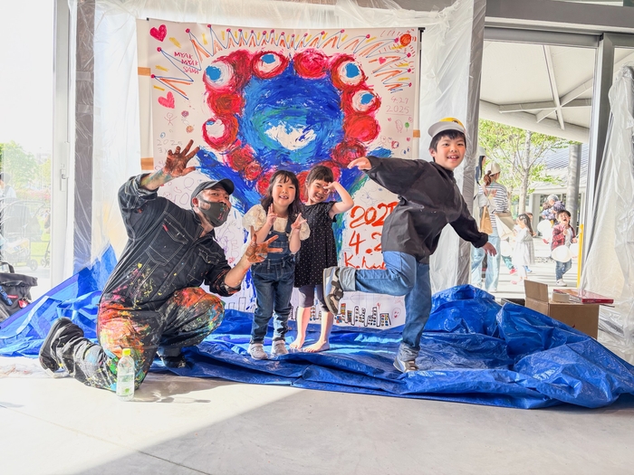 特に注目を集めたのは、アトリエ中大江公園前所属のアーティスト「Hirofumi Kaminaka」によるライブペインティングです。3回にわたり開催されたこのパフォーマンスは、毎回座席が満席になるほどの人気で、観客はHirofumi Kaminakaのダイナミックなライブペインティングに魅了されました。また、公園を利用するファミリーや子どもたちで賑わったアート体験コーナーは、常に人々が絶えない盛況ぶりで笑顔で溢れました。