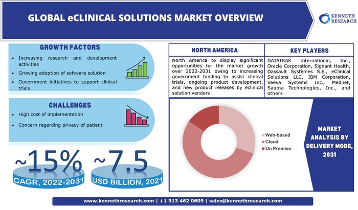 リサーチ・ネスターの一部門であるケネス・リサーチは最近、「eClinical Solutions Market: Global Demand Analysis & Opportunity Outlook 2031」と題する調査レポートを発表し、製品タイプ、デリバリーモード、エンドユーザー、地域別の市場セグメンテーションの観点から、世界のe臨床ソリューション市場の詳細な概要を提供しています。