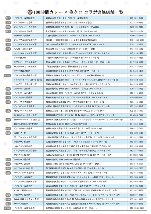 店舗一覧 ⇒ https://100hourscurry.jp/shop/