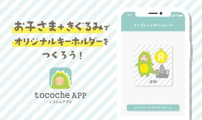スマホにあるお子様のお写真をテンプレートにはめ込むだけで、ゆるくて可愛いオリジナル「きぐるみキーホルダー」が簡単に作成できます。