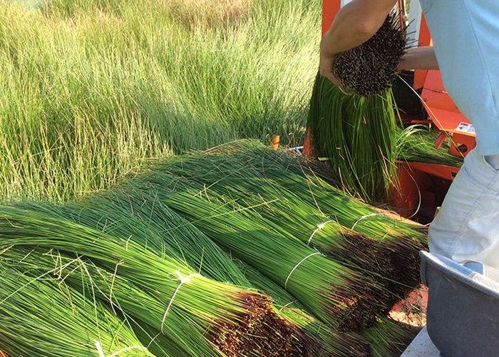 inocaは和歌山県(紀州)で80年以上続く井戸畳店がつくったブランドです。畳の原料である「いぐさ」を栽培する農家や加工職人が減少する現状を憂い、いぐさや畳を絶やしてはならないと始めたのが「紀州いぐさプロジェクト」。苗づくりから植え付け、刈り取り、加工まで、すべてを自分たちで行った、こだわりの「紀州いぐさ」からinocaは生まれました。
