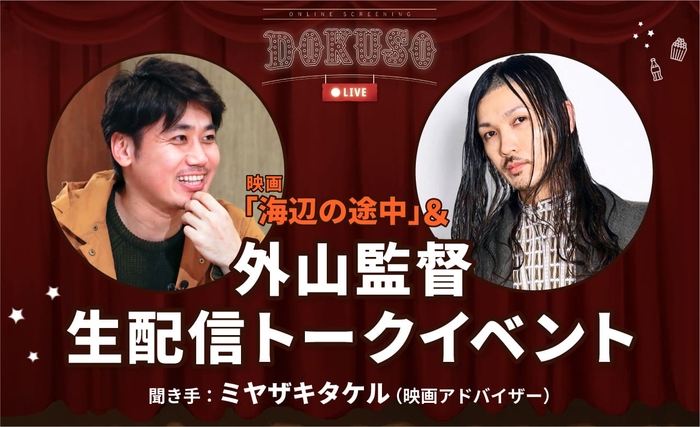 『海辺の途中』本編終了後に、外山文治監督と、映画アドバイザー・ミヤザキタケル氏によるアフタートークをライブ配信します。(※3月5日のみライブ配信。以降の上映日は録画映像となります。)